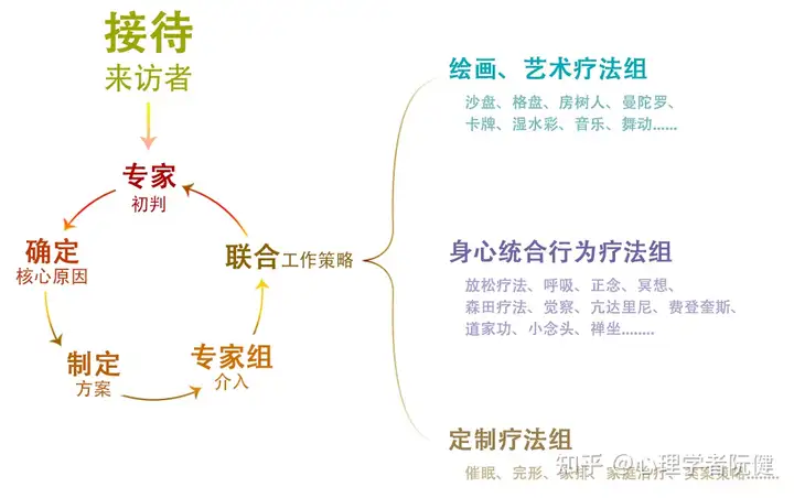 对应不同的程度,心理学均有不同的疗法,就像医生针对病人的症状,有问诊,有检测、有理疗、有手术、有住院等等。